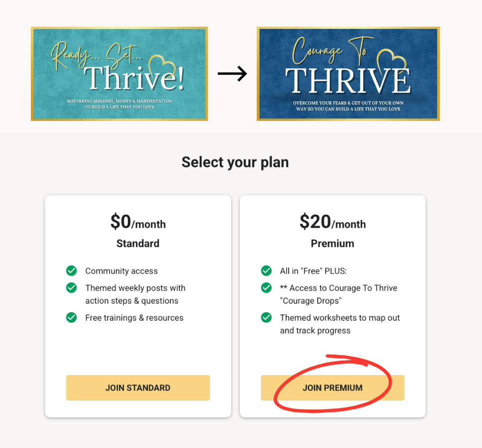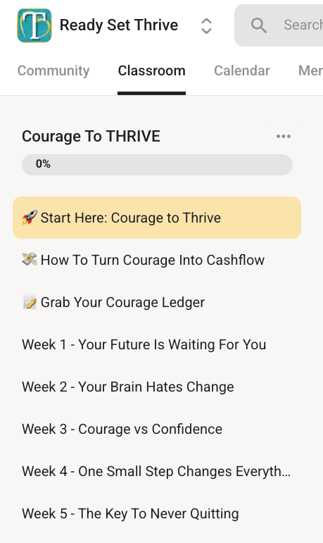 "Courage To Thrive" takes places inside my Skool Community: Ready Set THRIVE ๐